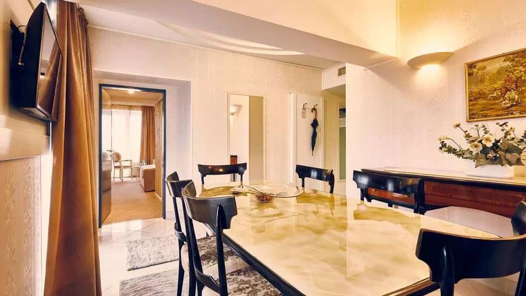 Amplasare: situat ultracentral, pe principalul bulevard al orașului, în imediata vecinătate a numeroaselor instituții publice și atracții turistice. Clădirea a fost inaugurată în anul 1969, iar vechea denumire a hotelului a fost Astoria“.
