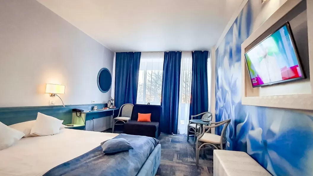 Structura cazare: 65 camere duble Standard (matrimoniale sau twin, suprafata 23 mp), 44 de camere duble Deluxe (renovate în 2023, suprafată de 23 mp, balcon), 26 camere duble Deluxe cu canapea extensibila (matrimoniale, suprafata 26 mp), 15 camere duble Family (2 paturi matrimoniale, suprafata 29 mp), 8 Apartamente Standard pentru 2 persoane (dormitor si living, suprafată de 45 mp, balcon) si 2 Apartamente Family cu canapea exensibilă în living (dormitor si living, suprafată de 45 mp, balcon).