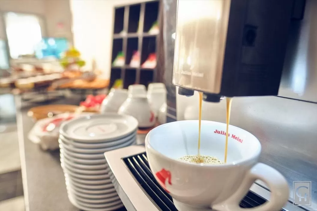 Barul de zi din incinta hotelului ofera sortimente variate de cafea, băuturi răcoritoare și alcoolice, precum și o gamă de cocktail-uri savuroase.