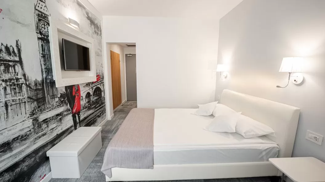 Structura cazare: 58 de camere Standard dotate cu mobilier clasic (suprafata 20 mp, 34 cu pat matrimonial 160 cm lățime și 24 cu paturi twin de 90 cm lățime), 34 camere Superioare dotate cu mobilier elegant și funcțional, conceput pentru a oferi un ambient aerisit și armonios (suprafata 20 mp, 22 cu pat matrimonial 160 cm lățime și 12 cu paturi twin de 90 cm lățime) și 4 apartamente ((suprafata 40 mp).