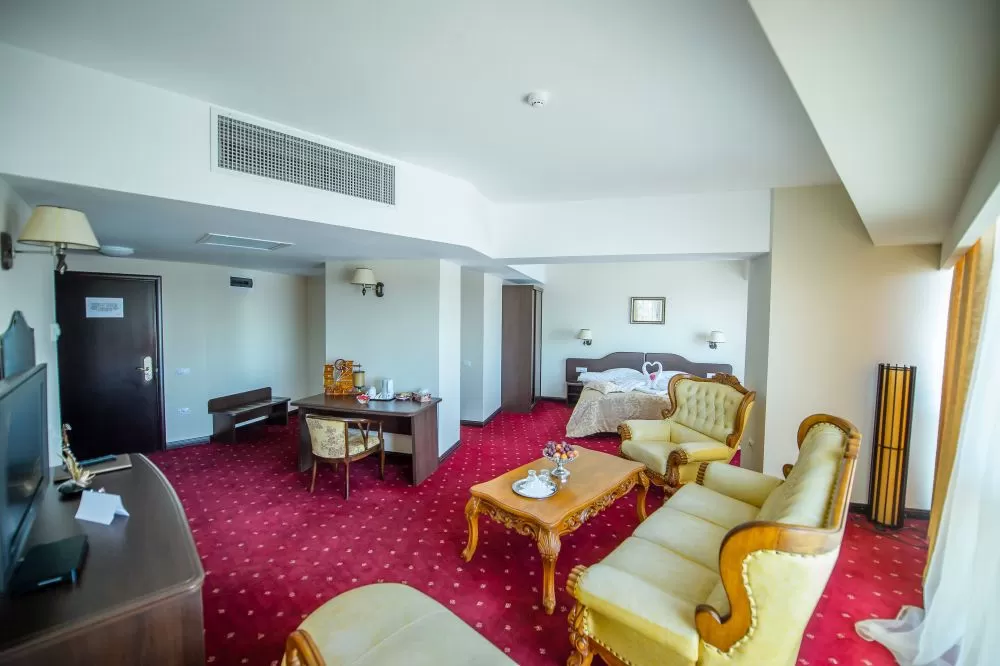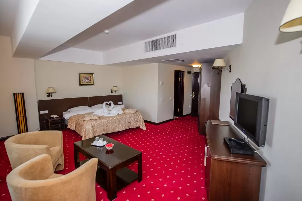 Hotelul are 63 camere double twin cu suprafata 22 mp, 33 camere cu pat matrimonial, suprafata 22 mp, 4 camere Matrimoniale Executive cu suprafata 27- 33 mp, care au in plus birou, facilitati de pregatire ceai si cafea, 4 Junior Suite cu suprafata 46 mp, ce au in plus spatiu de living cu canapea, fotolii si sezlong, birou, facilitati de pregatire ceai si cafea, Jacuzzi.