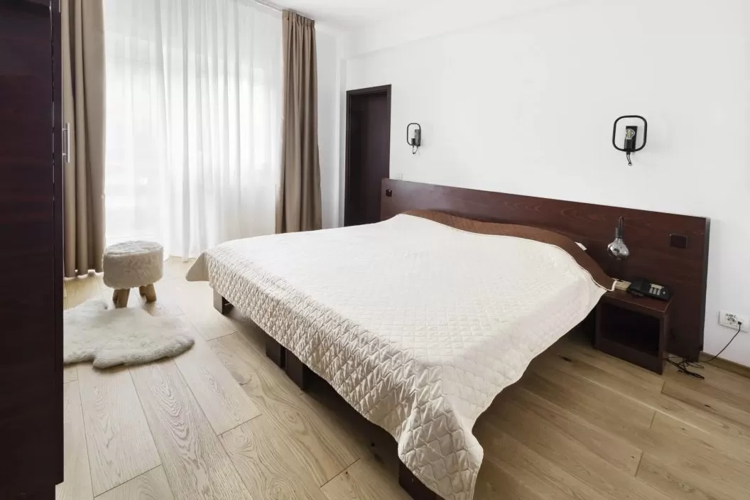 Etaj II: 4 camere duble standard twin, 1 apartament cu dormitor cu pat matrimonial si living cu canapea extensibila.