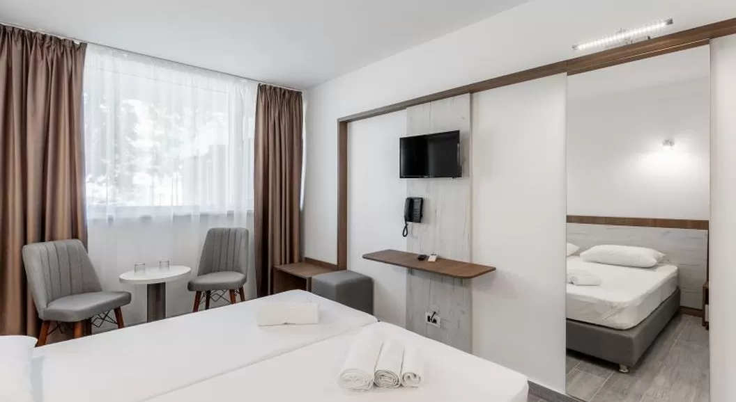 - 2 copii 4 -11.99 ani, cazati intr-o camera dubla cu 2 adulti, se va achita supliment 314 lei/zi pentru cazare in camera cu patul suplimentar si pachetull all inclusive;