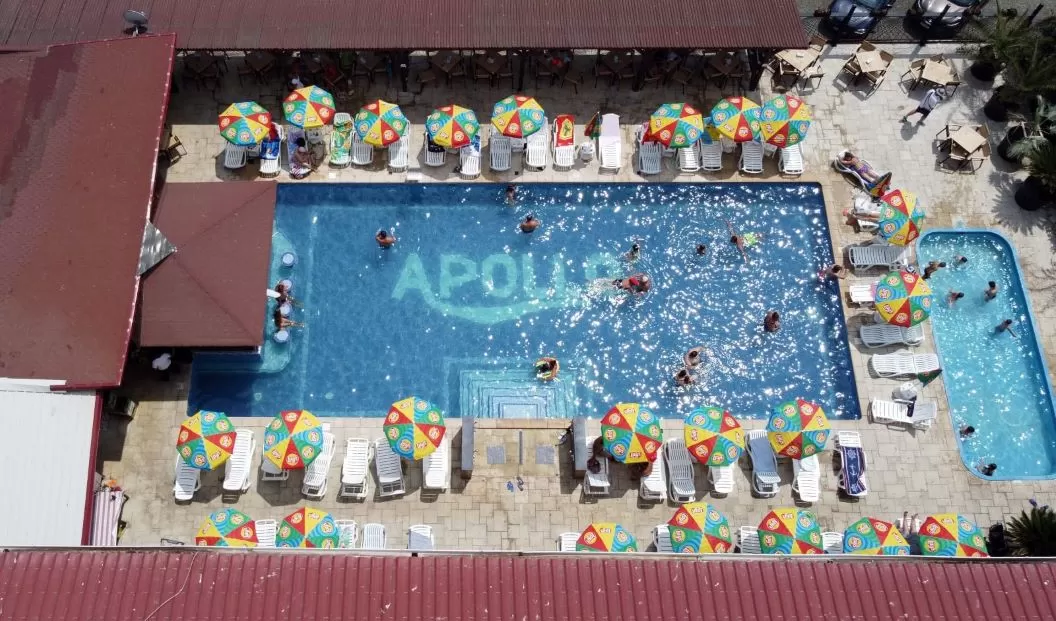 Facilitati: receptie, sala mic dejun, bar la piscina, piscina exterioara pentru adulti, piscina exterioara pentru copii, sezlonguri la piscina, internet wireless, loc de joaca pentru copii, centrala proprie, parcare privata.