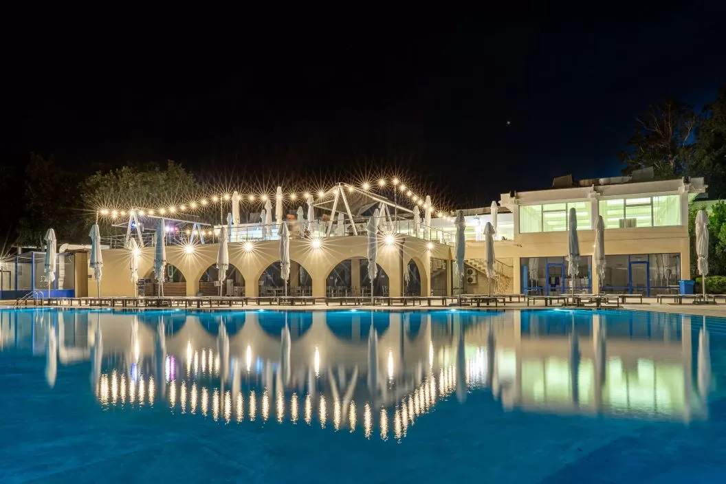 Facilitati resort: receptie, restaurant cu terasa panoramica, bar, piscina exterioara, bar la piscina, sezlonguri si umbrele la piscina, plaja privata cu beach bar, sezlonguri si umbrele la plaja, piscina exterioara pentru copii, 2 tobogane acvatice, locuri de joaca in interior si exterior, animatie si activitati pentru copii la piscina si pe plaja in timpul zilei, program de animație pe timp de seară pentru copii (minidisco sau spectacole de teatru de păpuși), program artistic cu muzica live in fiecare seara, sala de jocuri, parcare.
