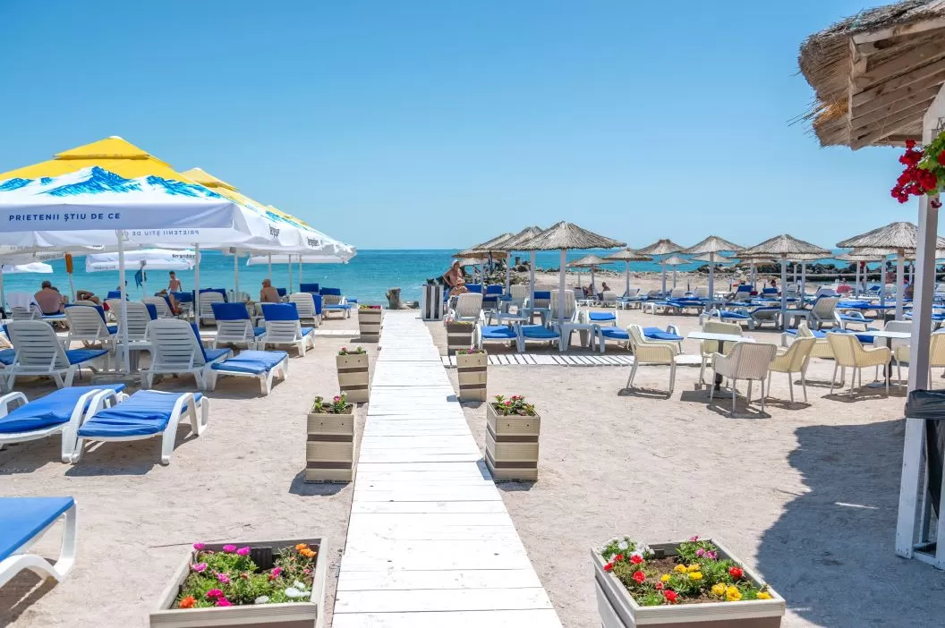 - umbrele și sezlonguri la plajă în limita locurilor disponibile (alocarea sezlongurilor se face în ordinea sosirii la plajă);