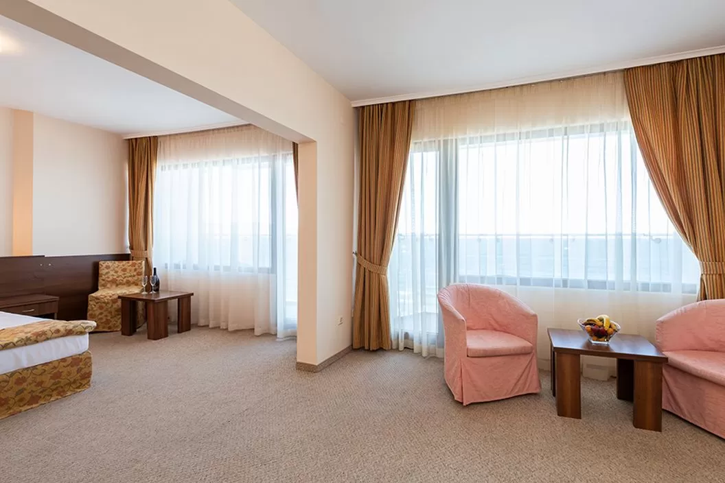 Camere: 1 pat dublu sau 2 paturi separate, pat suplimentar sau fotoliu extensibil, aer conditionat, TV cablu, telefon, Internet wireless gratuit, seif contra cost, baie cu dus si uscator de par, balcon, podea acoperita cu mocheta, curatenie in camera zilnic, schimbare lenjerie pat de 2 ori pe saptamana, schimbare prosoape eco sistem.
