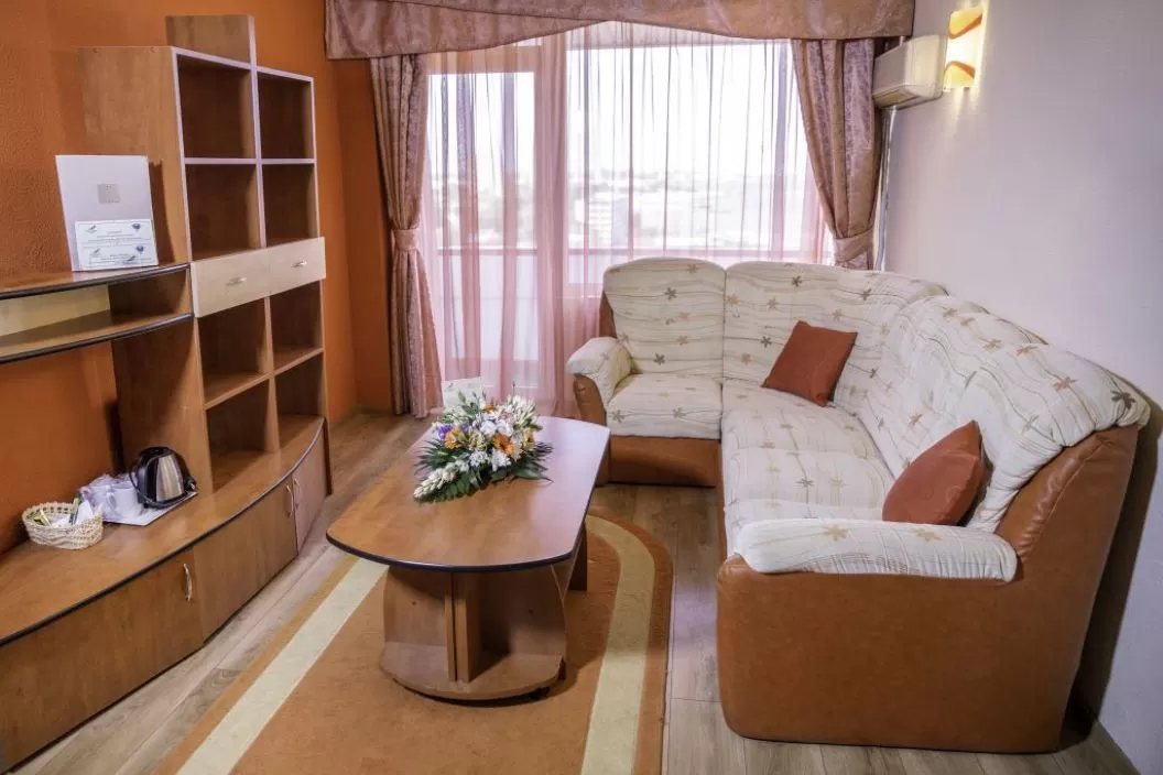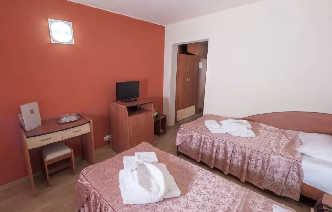 Dotari camere: aer conditionat, mobilier modern, TV cablu cu peste 60 de programe, internet wireless, minifrigider, telefon cu linie internationala, paturile dotate cu saltele ortopedice si perne antialergice, baie cu dus, uscator de par, balcon.