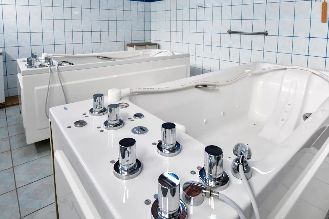 - hidrotermoterapie (impachetari/aplicatii/cataplasme cu namol sau parafina, bai calde cu: apa de mare, namol, apa sulfuroasa, plante, plante cu bule, afuziuni alternative, dusuri subacvale, sauna);