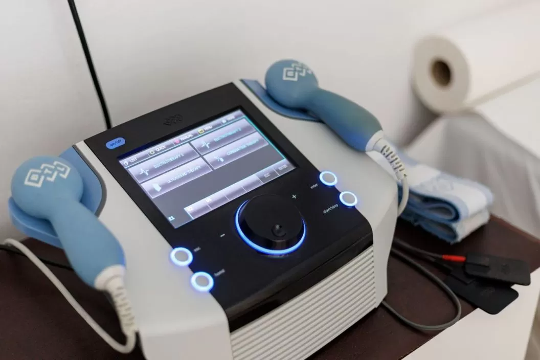 - electroterapie: aparate pentru electroterapie de joasa si medie frecventa, ultrasonoterapie, bai galvanice, lase, unde scurte, magnetodiaflux, solux, aplicatii de ultraviolete;