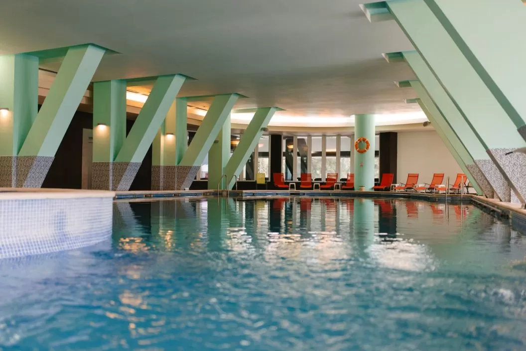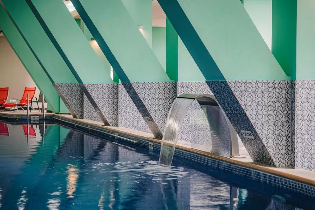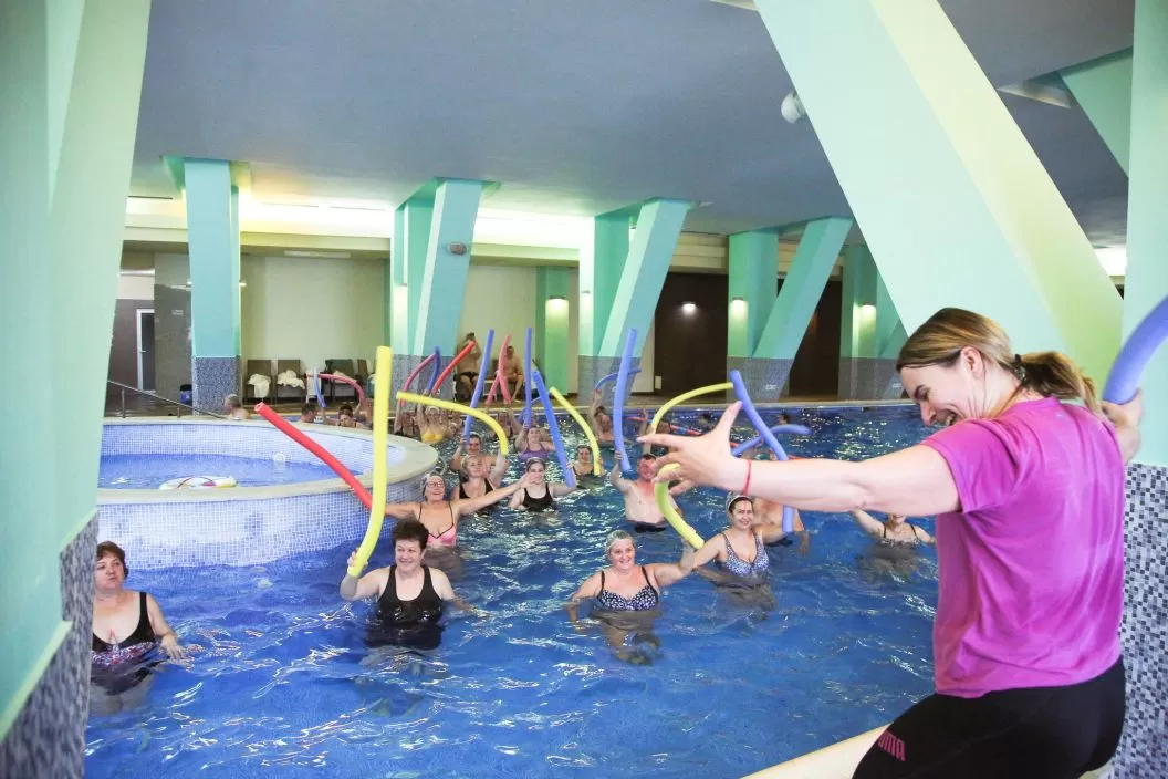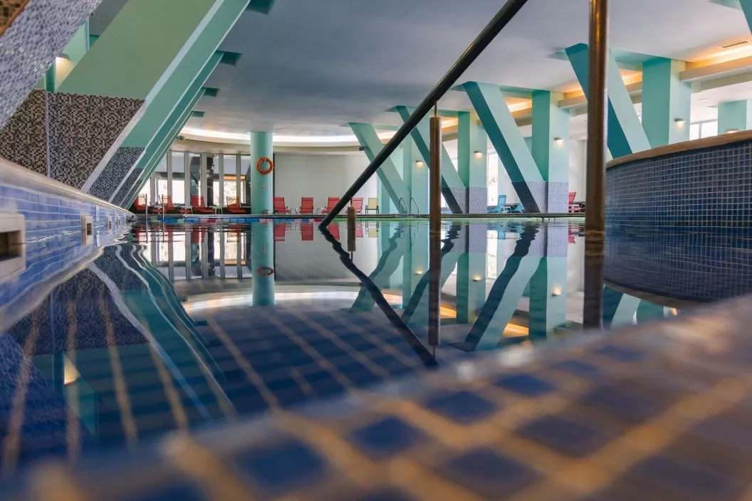Centrul Wellness SPA: piscina semi-olimpica cu hidromasaj, bazin copii (adancimea 0,5 metri), bazin de hidrokinetoterapie cu apa sarata.