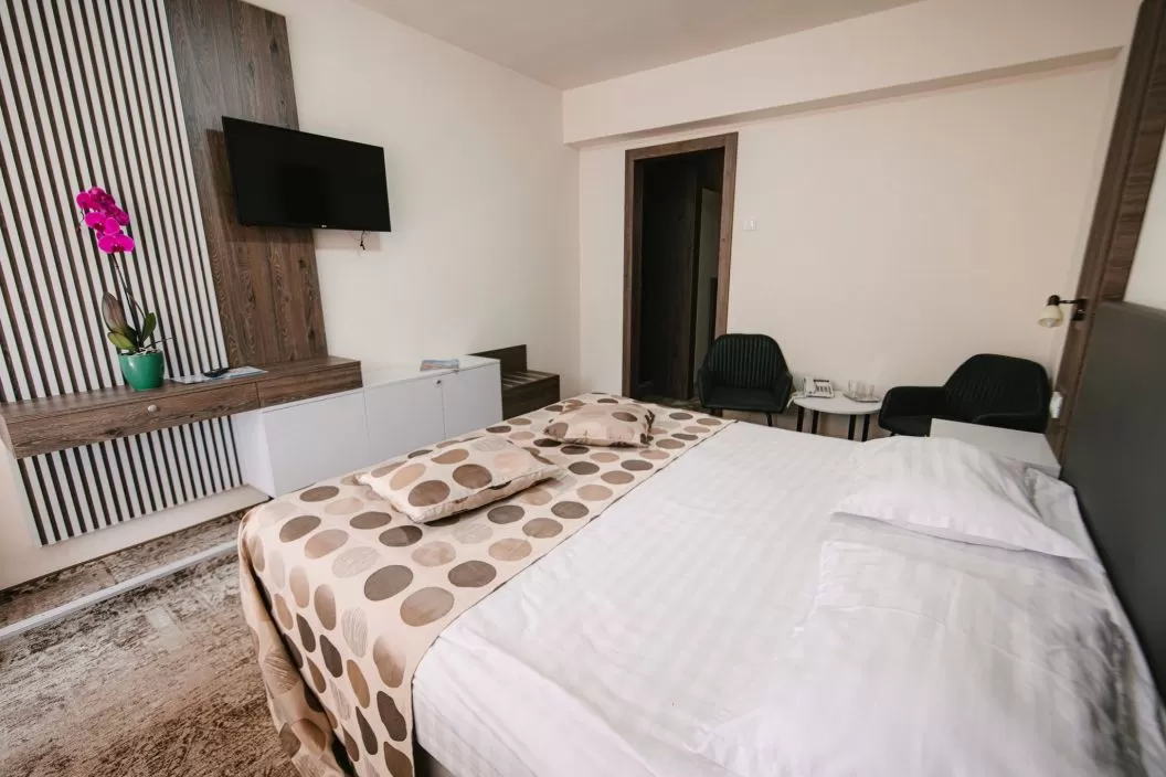 Dotari camere: aer conditionat, TV LCD cablu, minibar, seif, internet wireless, telefon, baie cu dus, uscator de par, acces cu card, balcon (exceptie camere etaj 4).