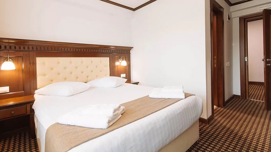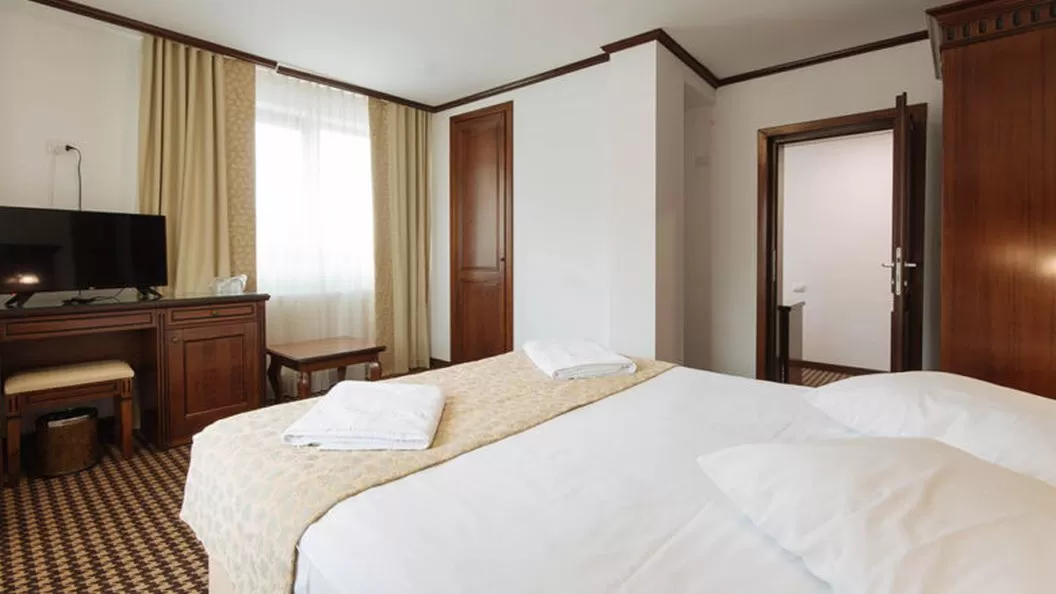 Suitele (camerele triple): suprafață de 30 de metri pătrați, au pat matrimonial si canapea extensibila.