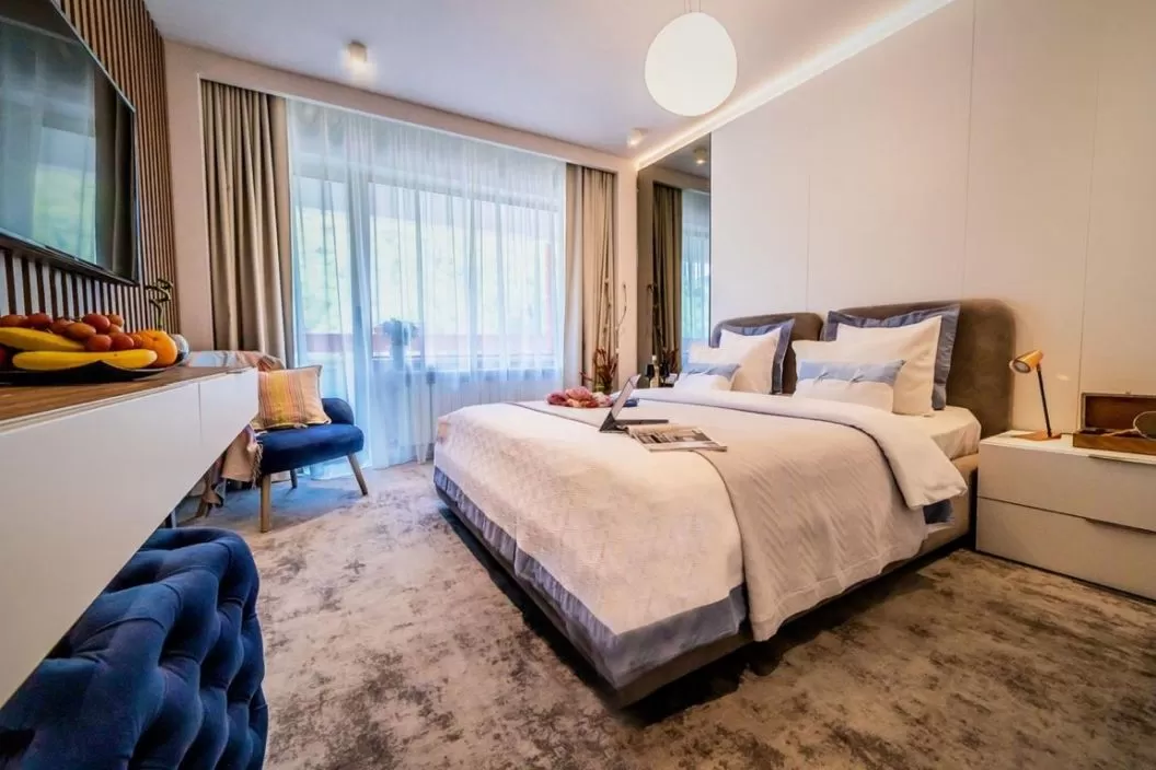 Cameră dublă renovată, cu balcon este luminoasa și confortabila, decor luxos și modern, perfecta pentru o escapadă romantică sau călătorii de afaceri.