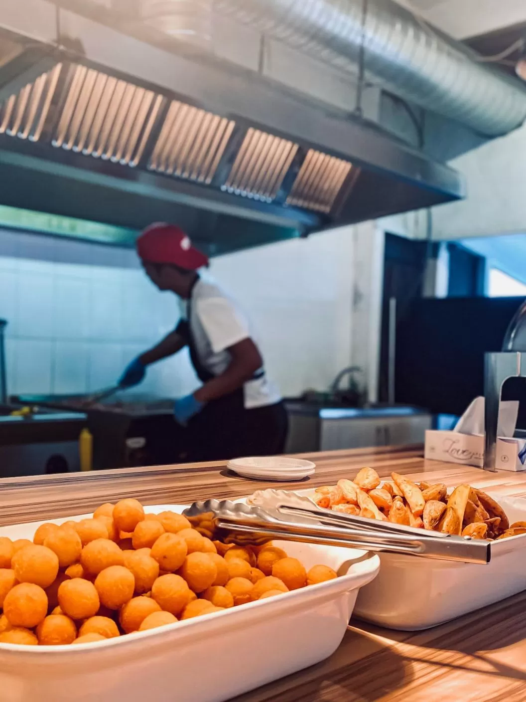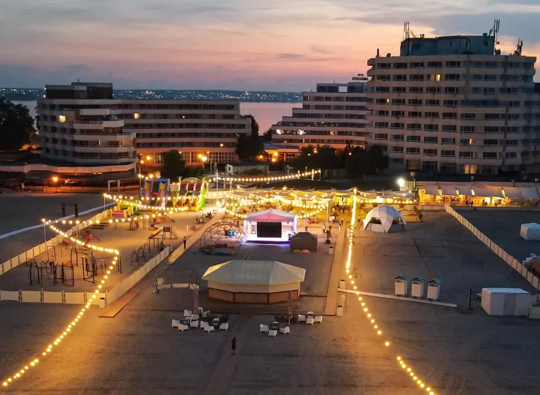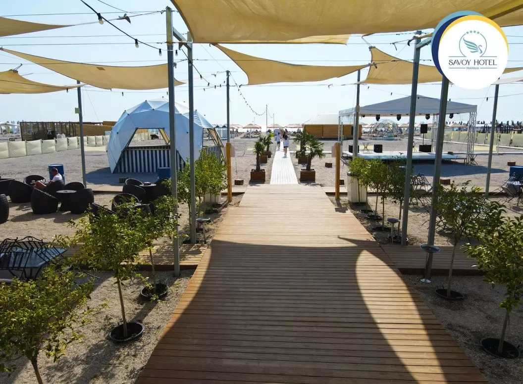 - 2 terase, un salon restaurant cu 350 de locuri -un lounge cu o capacitate de 140 de locuri la mese toate fiind pozitionate direct pe plaja;