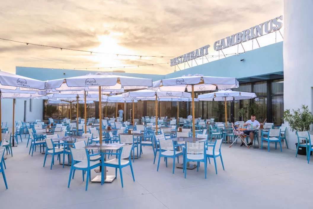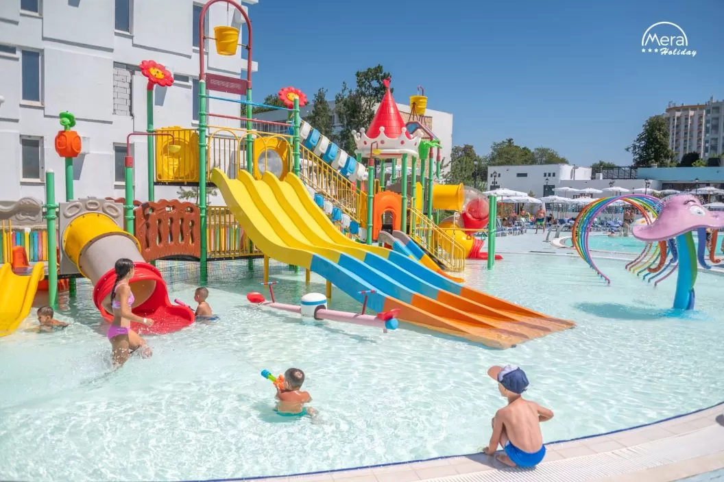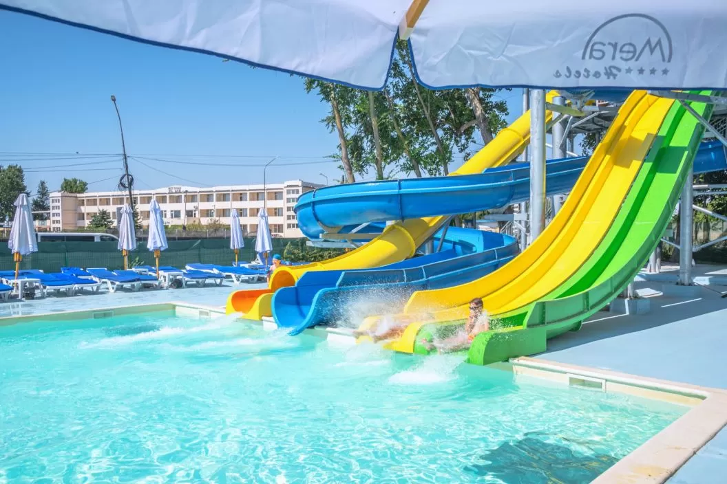 Facilitati: restaurant cu terasă, piscina exterioara pentru adulti, piscina exterioara pentru copii cu apă încălzită și tobogane acvatice, program artistic și animații zilnice, plajă privată, prosoape pentru piscină și plajă, bar pe plaja privată, parcare privată.