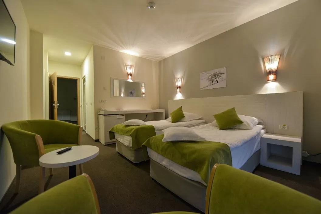 Structura cazare: 26 camere duble cu paturi twin, 15 camere duble cu pat matrimonial, 5 camere triple si 4 apartamente cu pat matrimonial.