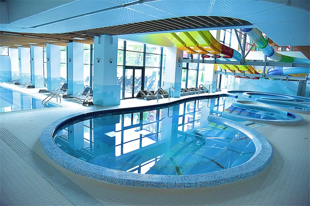 Centrul Wellness: piscina interioara incalzita cu hidromasaj și înot contra curentului, sauna uscata, baie turceasca, sala masaj, sala fitness -kinetoterapie (bandă de alergat, aparat mutifuncțional, spaliere, greutăți libere și accesorii specifice). În piscină poți beneficia de sesiuni de hidrokinetoterapie, sub îndrumarea unui specialist. Este completată de o zonă de plajă exterioară dotată cu șezlonguri și umbrele.