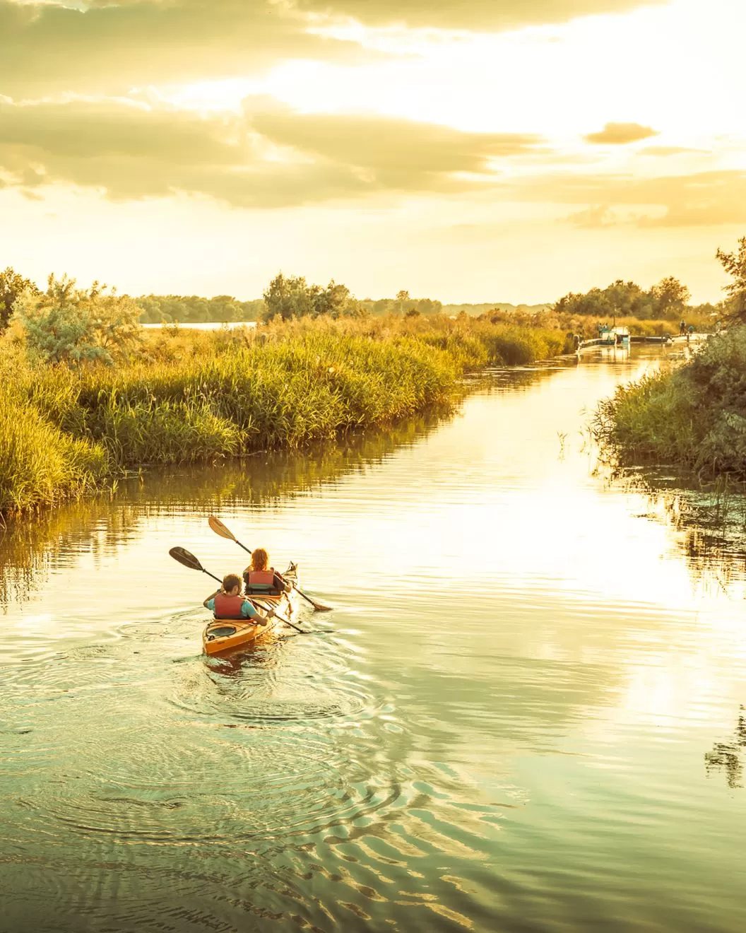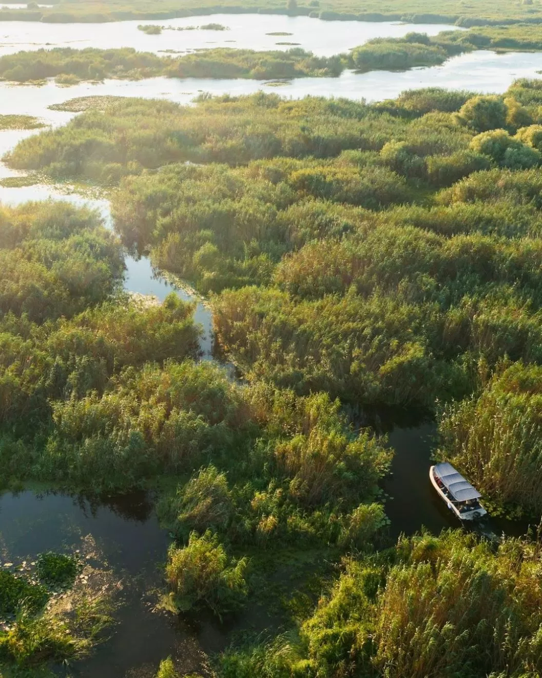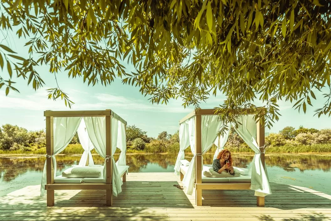 În mijloc găsești lacul natural populat de vegetație specifică, întregind cadrul natural autentic din care se naște Green Village Resort. Din loc în loc găsești și câte o băncuță de lemn, cu vedere la canalele Dunării care mărginesc resortul.