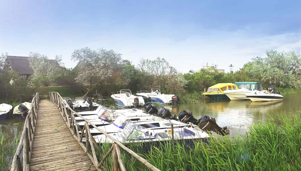 Pontoanele și foișoarele mărginesc zona spre lacuri și oferă priveliști către nemărginirea Deltei.