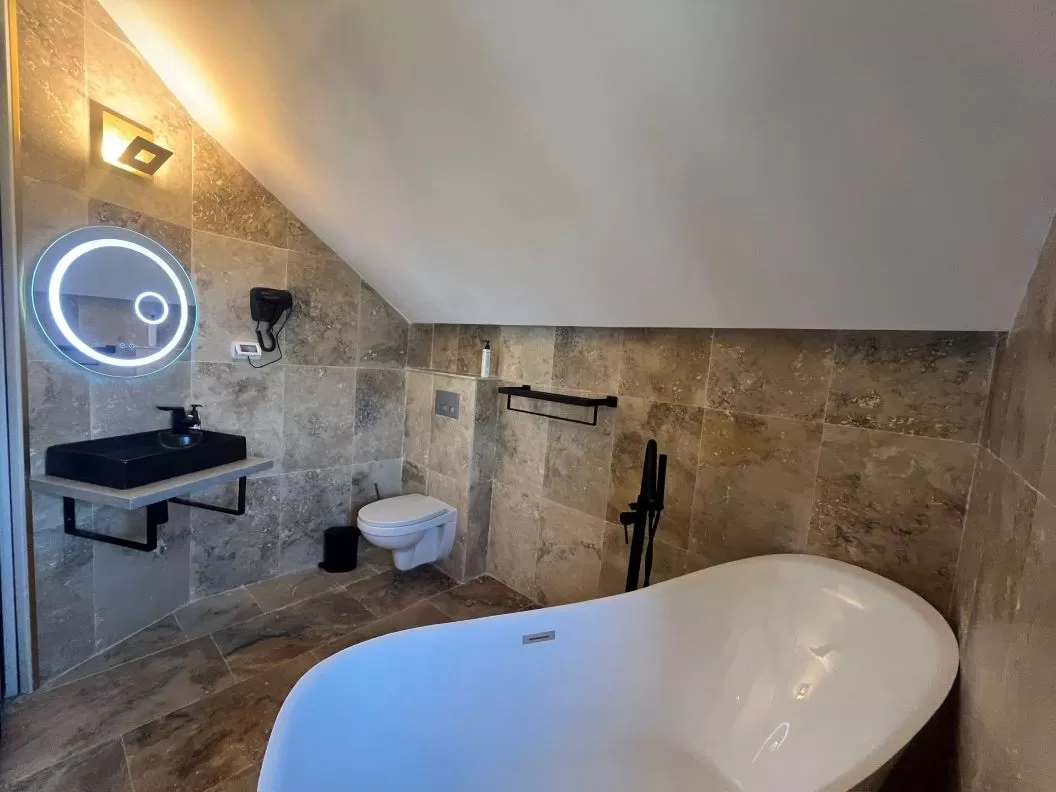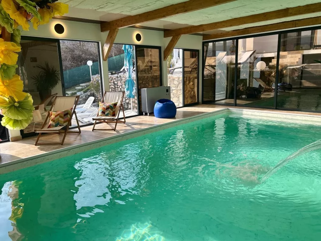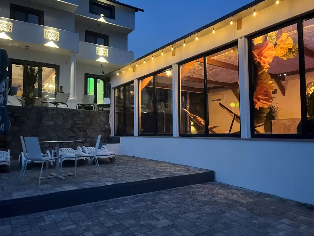 Facilitati: piscină interioară încălzită cu vedere panoramica, zona de relaxare exterioară cu palmieri și plante exotice, living, internet wireless, parcare auto securizata.