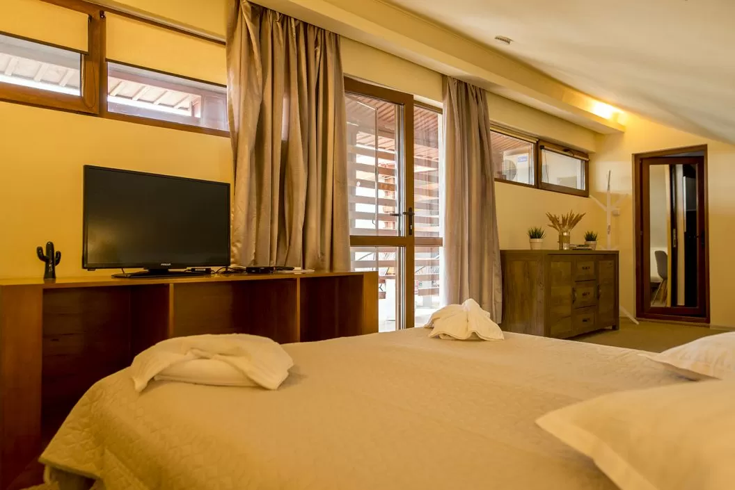 Camera Family: este compusa din 2 incaperi, despartite de un semizid (in prima incapere exista un pat matrimoniala 2.00/1.80 m, iar in a 2 a incapere 2 paturi twin), 1 baie si balcon tip terasa.