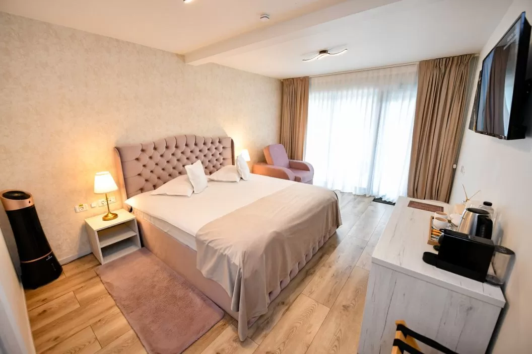 Toate camerele au balcoane si vedere spectaculoasa, fiind create cu un design interior modern. In plus, geamurile mari, cu vedere panoramica, ofera lumina naturala ampla, pentru a putea admira minunatiile naturii. De asemenea, paturile Queen DeLuxe din fiecare camera sunt mari si confortabile, oferind un somn linistit si relaxant.
