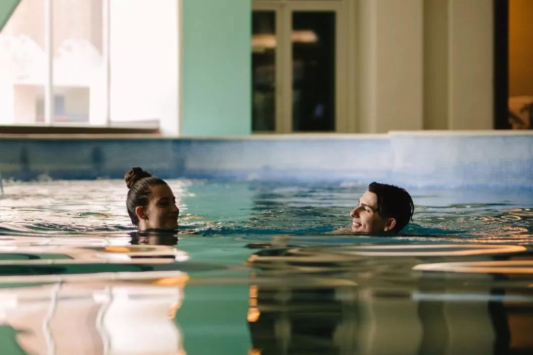 Centrul Wellness SPA: piscina semi-olimpica cu hidromasaj, bazin copii (adancimea 0,5 metri), bazin de hidrokinetoterapie cu apa sarata.