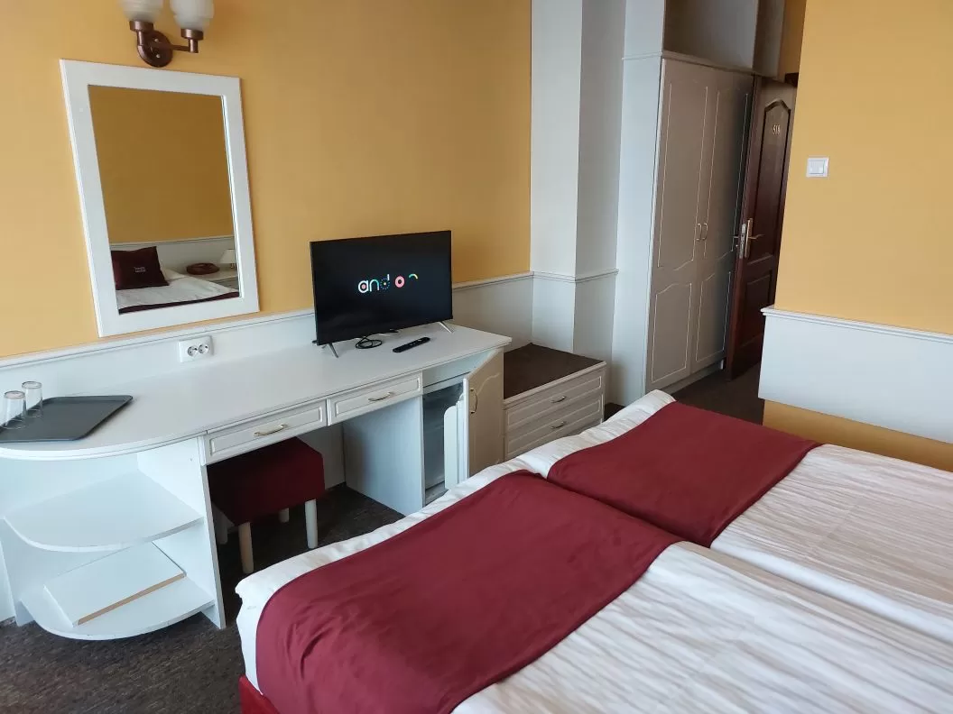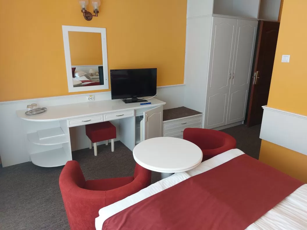 Dotari camera: TV cablu, minibar, internet wireless, baie cu dus, uscator de par, halate de baie, balcon.